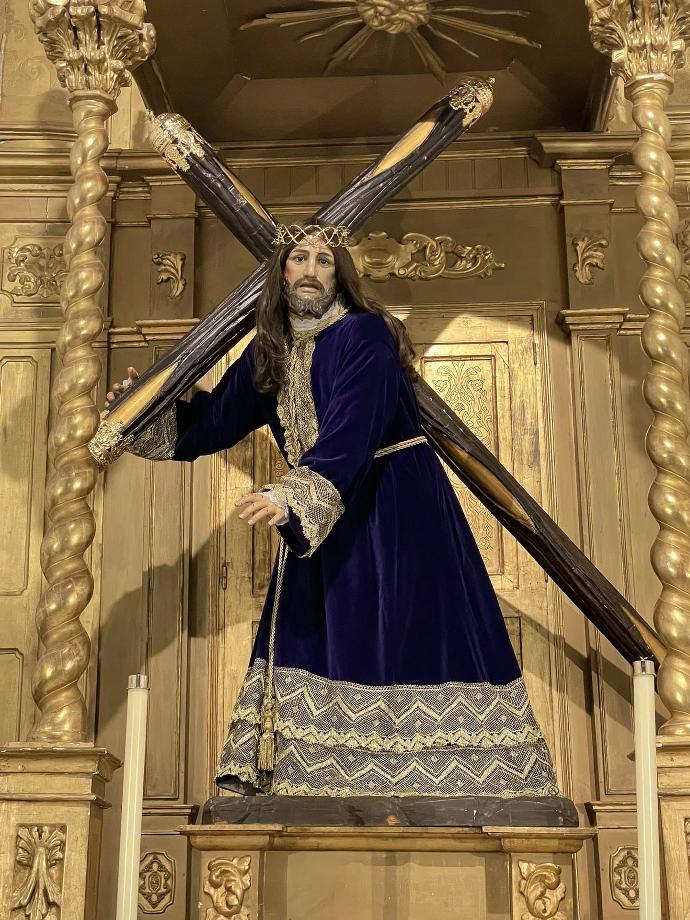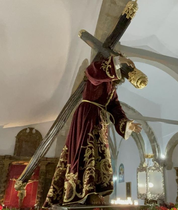 Actualmente no se le pone por encontrarse el terciopelo en muy mal estado, consecuencia del sol y de la antigua ventana que tenía el retablo del Señor.